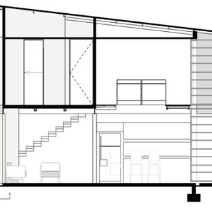 In only 105 m2 one can transit through the house in parallel to the seriated planes while diagonal views expand space. A continuous going forth and retracing one´s steps at significant points occurs inside. Outside, the house needs to interweave with its immediate neighbors, thus it recedes in order to discover a zigzagging profile of the house on the south. On the opposite side, a vacant lot, the house offers a separation and a geometry that resonates with that of the existing house as an invitation to the next architect to work under similar principles.